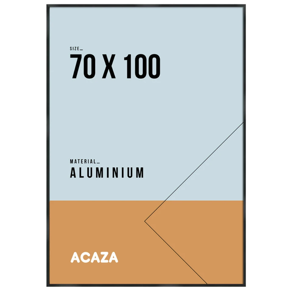 Maak het gezellig en hang een mooie poster of familie foto op. Deze stijlvolle fotolijst in zwart aluminium van ACAZA is geschikt voor foto’s of posters met een afmeting van 70 x 100 cm. De fotolijsten hebben een perfecte pasvorm en zijn tevens gemakkelijk te openen aan de achterzijde. Je kan deze lijsten zowel horizontaal als verticaal ophangen met behulp van de metalen hangers.