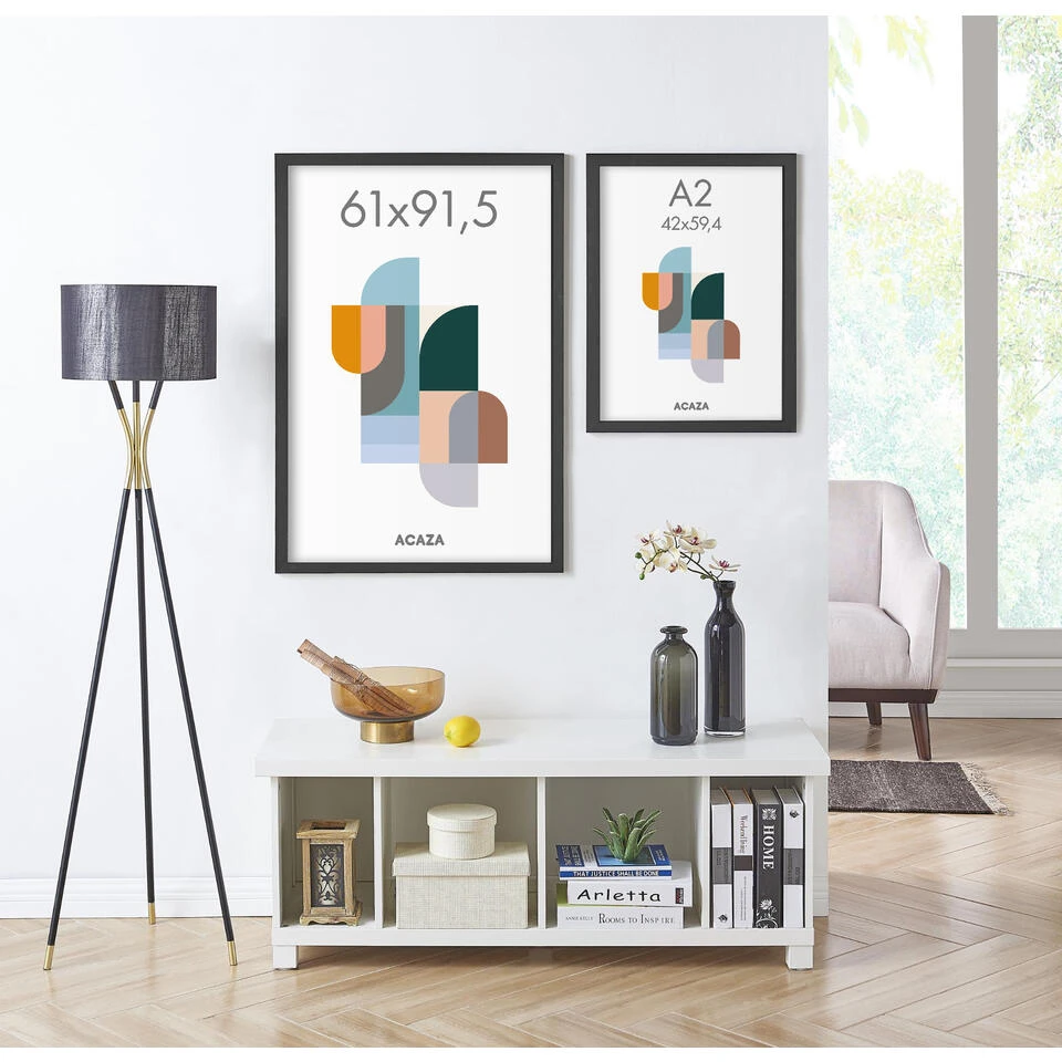 Dankzij deze houten lijst van ACAZA kan je je foto’s, posters en affiches een plaatsje aan de muur geven. De zwarte fotolijst is aan de achterkant voorzien van hangers waarmee je ze zowel horizontaal als verticaal tegen de muur kan bevestigen.