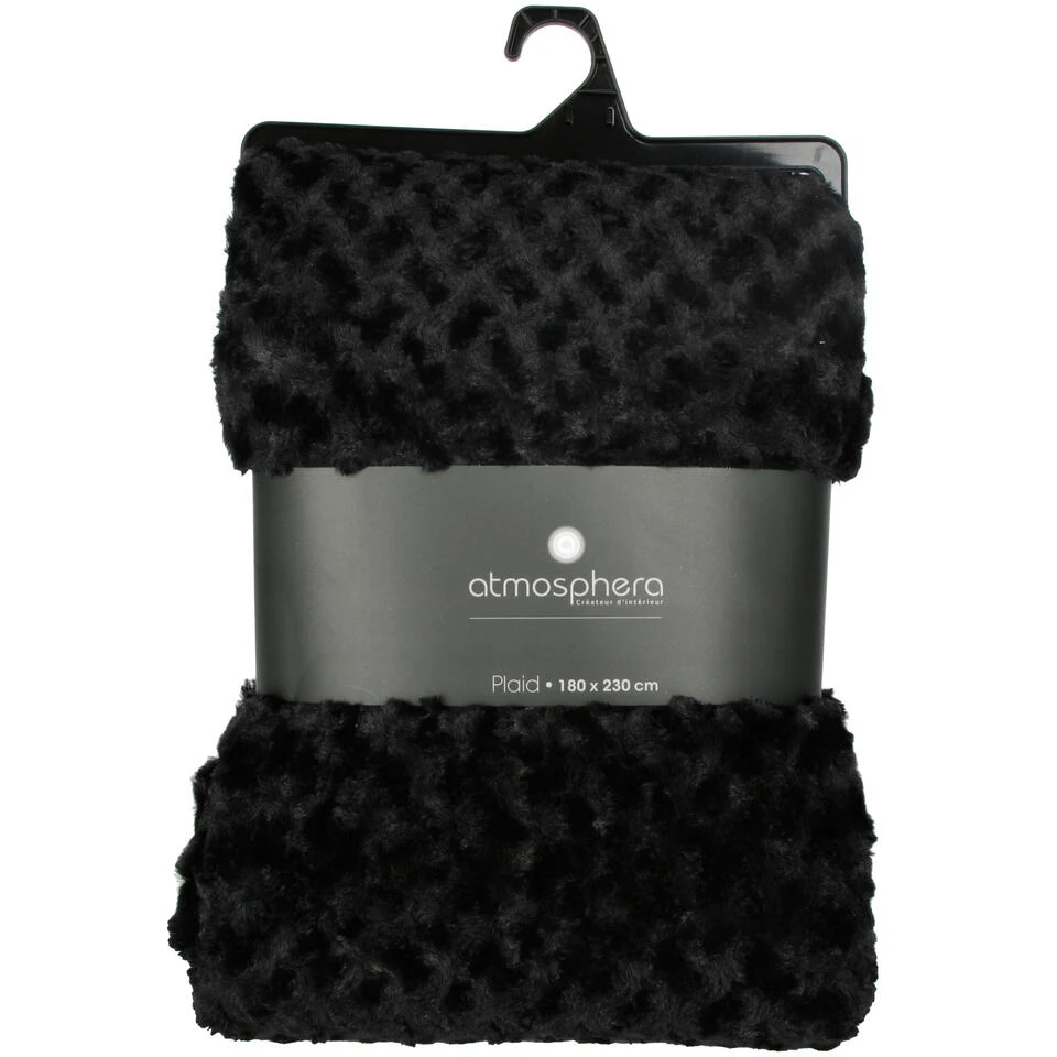 Atmosphera Bank/bed Deken/plaid – Geknoopt Motief – 230 X 180 Cm – Zwart