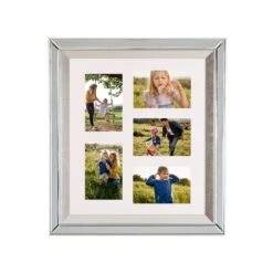 Vijfdelige fotolijst in klassiek design. Wil je je trouwfoto’s of familiefoto’s decoratief neerzetten? Dan is deze tijdloze fotolijst iets voor jou. Dankzij de lijst hoef je niet langer een enkele foto te kiezen, maar kun je tot 5 foto’s elegant presenteren en misschien zelfs combineren met een leuke quote of ander decoratief element. Deze lijst geeft elke kamer een nostalgische en rustgevende sfeer en past zich perfect aan alle inrichtingsstijlen aan.