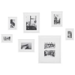 Gallerij van foto’s in frames. Een set van klassieke zwarte en witte foto’s, die elk interieur zullen upgraden. Hun minimalistische MDF frames zijn gevuld met plexiglas om de inhoud te beschermen. Haakjes zijn makkelijk aan te brengen en zorgen voor gemakkelijke en veilige verbinding met de wand. De foto’s kunnen veranderd worden door je eigen foto’s.