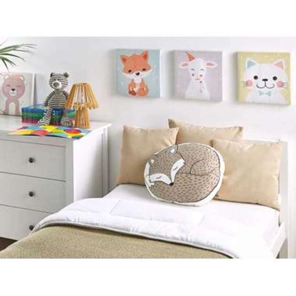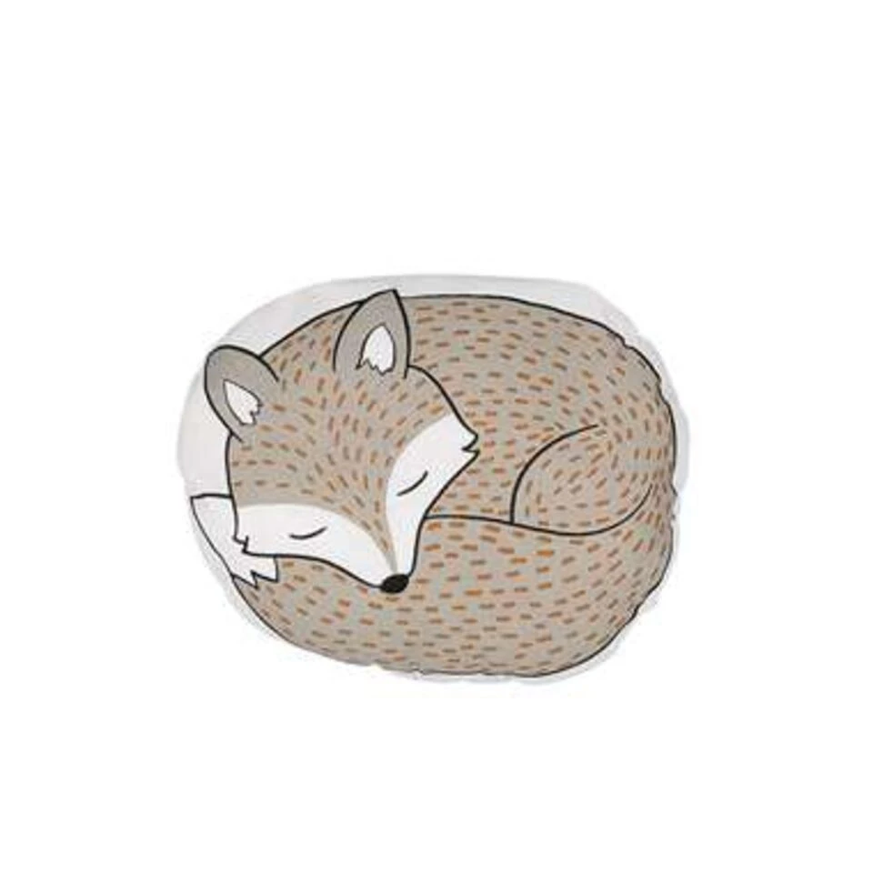Vrolijk decoratief kussen met een schattige vos. Dit zachte kussen met de print van een slapende vos is een perfecte aanvulling op elke kinderkamer. Dit kussen werkt goed als speeltje dankzij de zachte vulling. De dierenprint prikkelt de fantasie van kinderen en past perfect in elke peuterkamer.