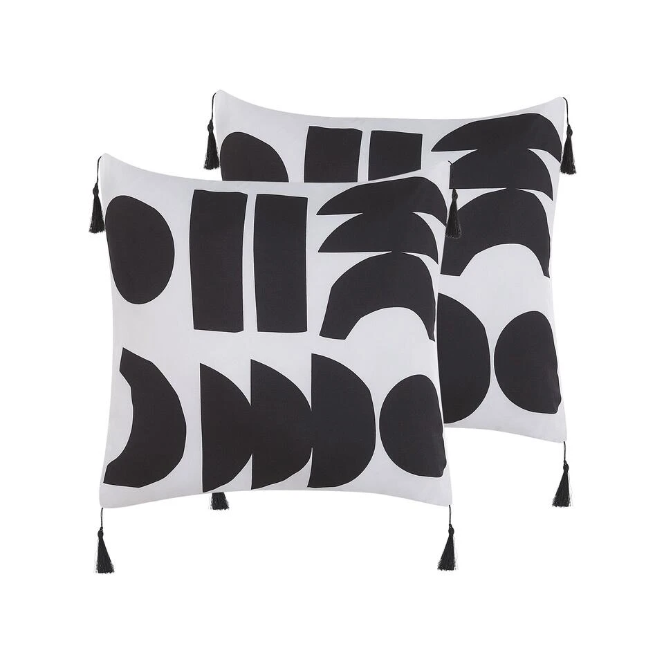 Set van Decoratieve Kussens met Kwastjes. Kussens aan je bank of fauteuil toevoegen kan de inrichting van je huis direct veranderen. Deze set, met aan de voorkant een uniek geometrisch ontwerp, zullen zeker de aandacht trekken. Daarnaast hebben ze ook kwastjes aan elke hoek van de hoes. Ze zijn gemaakt van polyester, wat er voor zorgt dat ze onderhoudsvriendelijk zijn en aangenaam om aan te raken zijn.