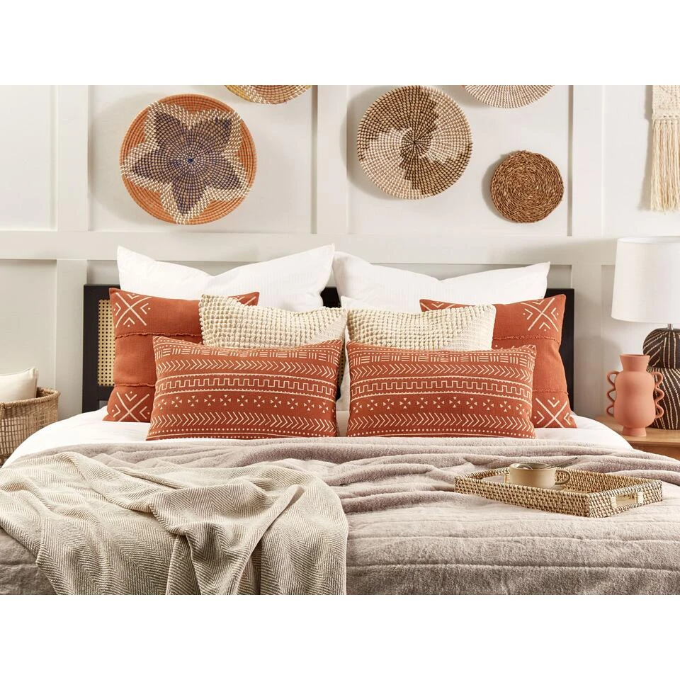 Rechthoekige kussens met blokdruk patroon. Maak je huis gezelliger en comfortabeler met deze rechthoekige kussens. De kussens zijn erg zacht omdat het handgeweven is van katoen. Het heeft ook een opvallend patroon in wit, dat is gemaakt met behulp van de blokdruktechniek. Hierdoor past het kussen in veel verschillende interieurs, van boho tot rustiek of modern.