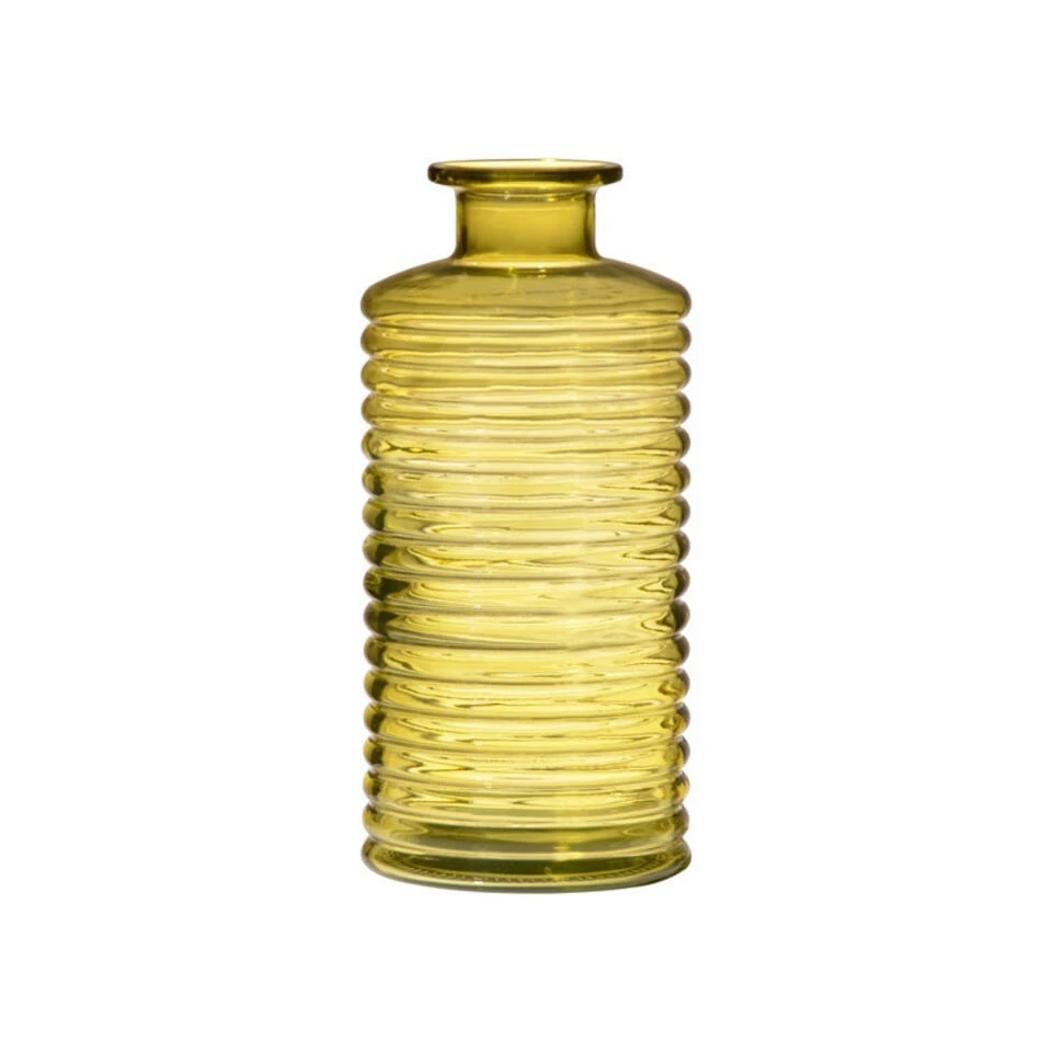 Bellatio Design Vaas – Geel – Transparant – Geribbeld – 9 X 21 Cm