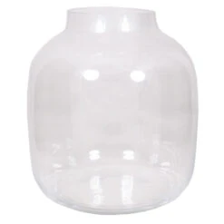 Ronde vaas helder glas 29 cm. Transparante vaas met een afgeronde/bolle vorm. Materiaal: 100% glas. Formaat hoogte: 29 cm, diameter/doorsnede: 26 cm. Kleur: transparant. Bolvormige bloemenvazen van glas.