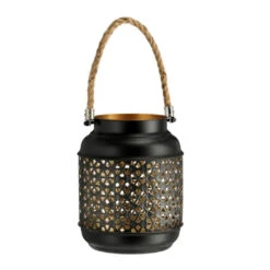 Cepewa Windlicht – Kaarshouder – Zwart Met Goudkleurig – 18 Cm