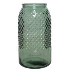 Decoris vaas van gerecycled glas met stijlvol relief. Deze duurzame bloemenvaas is geschikt voor o.a. bloemen, boeketten of takken. Diameter: ca. 15 cm. Hoogte: ca. 28 cm. Materiaal: 100% gerecycled glas. Afwerking: transparant.A Kleur: groen glas.