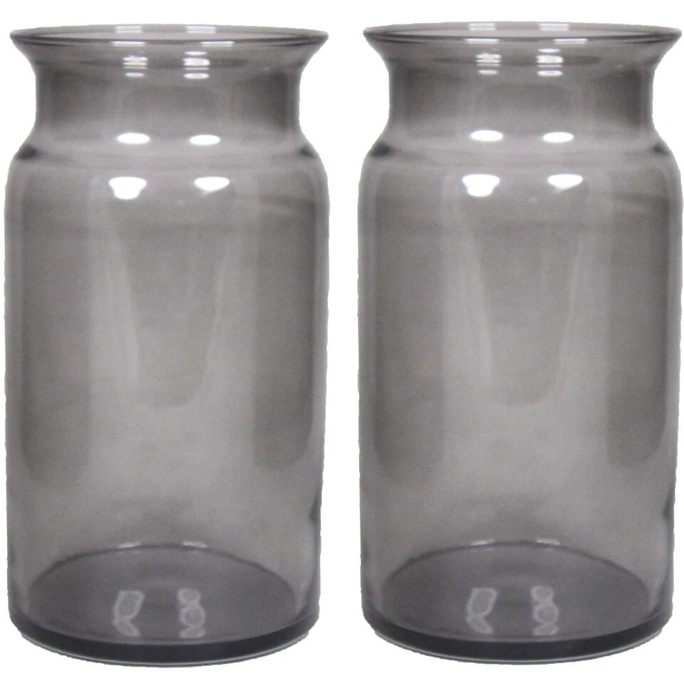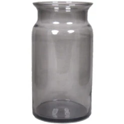 Glazen melkbus vaas/vazen zwart 7 liter smalle hals 16 x 29 cm. Een mooie glazen vaas met een smalle hals. Geschikt om boeketten en losse bloemen in te plaatsen, maar ook voor leuke (seizoensgebonden) decoratie.