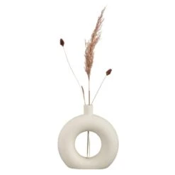 Bloemen vaas/vazen in de kleur glanzend wit van keramiek. Een stevige vaas met een speciale coating zodat het keramiek geen water opzuigt. De ronde vaas met glanzende afwerking heeft geen gaatjes aan de onderkant.
