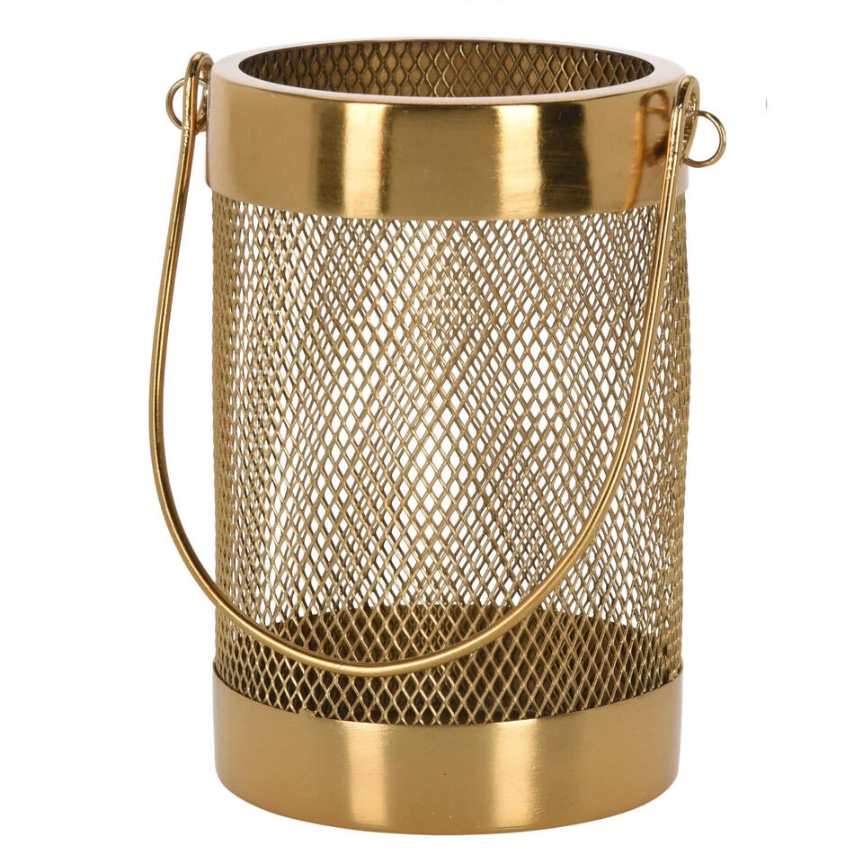 H&S Collection Windlicht – Goudkleurig – Metaal – 12 Cm – Lantaarn