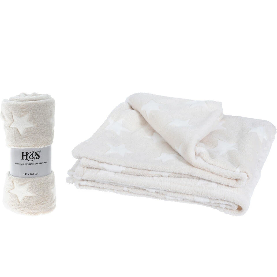 H&S Fleece Deken/plaid – Polyester – Beige – 130 X 160 Cm