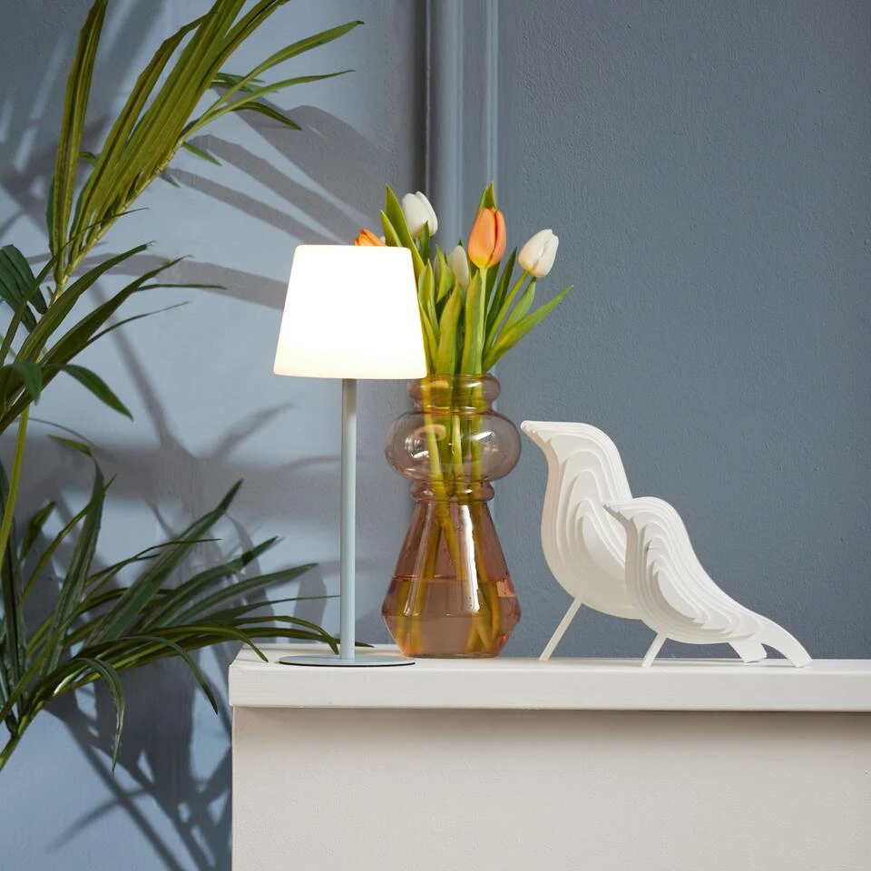 De Outdoors tafellamp van Leitmotiv is een draadloze klassieker. Hij heeft minimalisme zowat uitgevonden, en past dan ook perfect op tafel tijdens dat zomerse etentje in de achtertuin. Dankzij zijn handige USB-systeem en twee lichtstanden kun je de lamp gewoon opladen en neerzetten waar je wilt. De ijzeren Outdoors tafellamp van Leitmotiv is verkrijgbaar in vijf trendy kleuren, waaronder zachtblauw en groen.