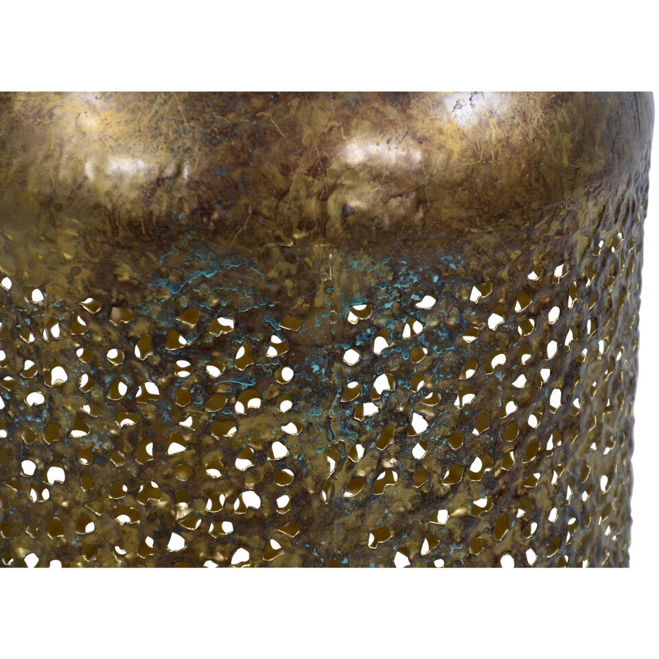 Metalen lantaarn/windlicht goud grof 20 x 32 cm. Deze mooie lantaarn van metaal heeft een grof gaatjes patroon en een vintage gouden afwerking voor een antieke uitstraling. De lantaarn kan worden neergezet of opgehangen aan het stevige handvat.