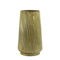 De vaas ZEBRA heeft een prachtige vorm waardoor (kunst)bloemen of pluimen goed tot zijn recht komen. Dit product kan je gebruiken als echte eye-catcher in elke ruimte! Deze vaas is gemaakt van Metaal en heeft een gouden kleur. Dit product heeft de volgende afmetingen 25x25x43 cm.