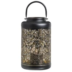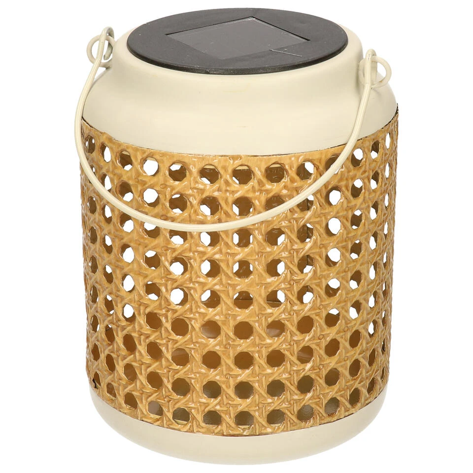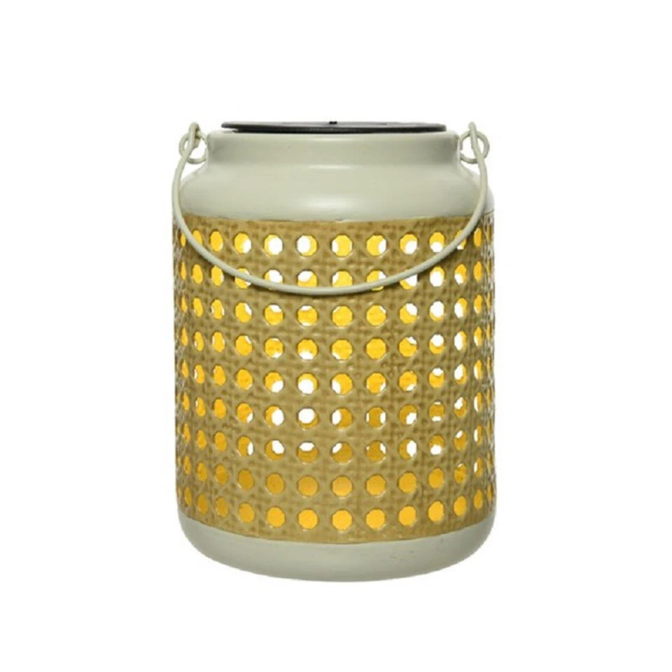 Buiten/tuin solar lantaarn wit tuinverlichting met gaatjes. De warm witte verlichting werkt op zonne-energie waardoor het zichzelf oplaadt gedurende de dag, volledig opgeladen heeft de lantaarn 6 branduren. U kunt de lantaarn neerzetten of ophangen aan het metalen handvat voor een gezellige sfeer in de tuin, bijvoorbeeld in een partytent/parasol of aan houders voor hangplanten. De gaatjes in de lantaarn zorgen voor een leuk patroon wanneer de lantaarn aan staat.