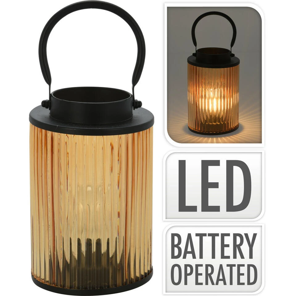 Metalen LED lantaarn/windlicht warm wit licht 12,5 x 12,5 x 16,5 cm. Materiaal: metaal en glas. 2 AAA batterijen zijn niet inbegrepen. Windlichten/lantaarns.