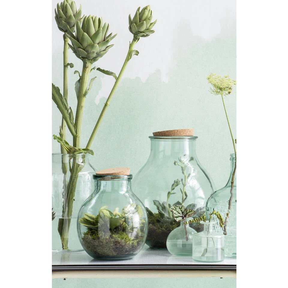 Vaas van H25 x Ø21 cmGemaakt van gerecycled glasAf te sluiten met een kurken dekselIdeaal als terrarium voor een ecosysteemVul je interieur aan met vaas Olly van Mica Decorations. Deze vaas – afkomstig uit Spanje – heeft een ronde vorm en kan worden afgesloten met een deksel van kurk. Het dikke glas is 100% gerecycled, dus erg duurzaam! De vaas past in ieder interieur en is geschikt voor vele doeleinden. Ga voor groen en maak je eigen ecosysteem, of gebruik het als opbergpot. Krijg je er geen genoeg van? Vaas Olly is verkrijgbaar in verschillende afmetingen. Dit model is H25 x Ø21 cm.