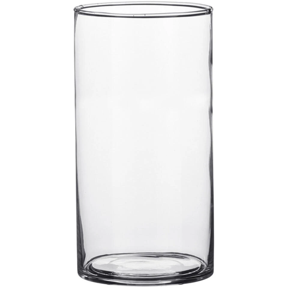 Transparante cilinder vaas/vazen van glas 9 x 15 cm. Ronde rechte kleine/mini vaas. Geschikt om een klein boeket of losse bloemen in te plaatsen, maar ook leuk met (seizoensgebonden) decoratie.