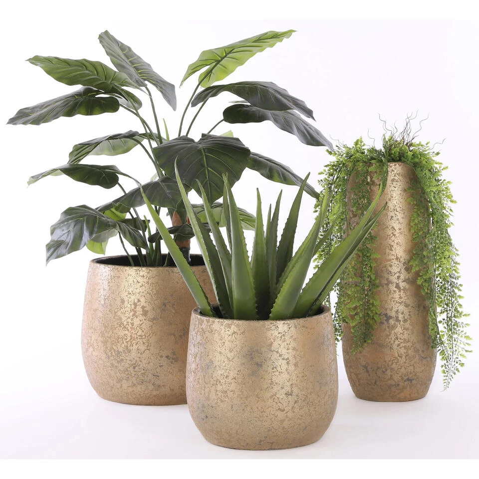Plantenpot/Bloemenvaas van keramiek in een mooie flakes goud print 35 x 17 cm. Deze hoge ronde bloempot vaas uit de Clemente serie met gemeleerd effect geeft een boost aan uw interieur. Gemaakt van terracotta/keramiek. Diameter: 17 cm. Hoogte: 35 cm.