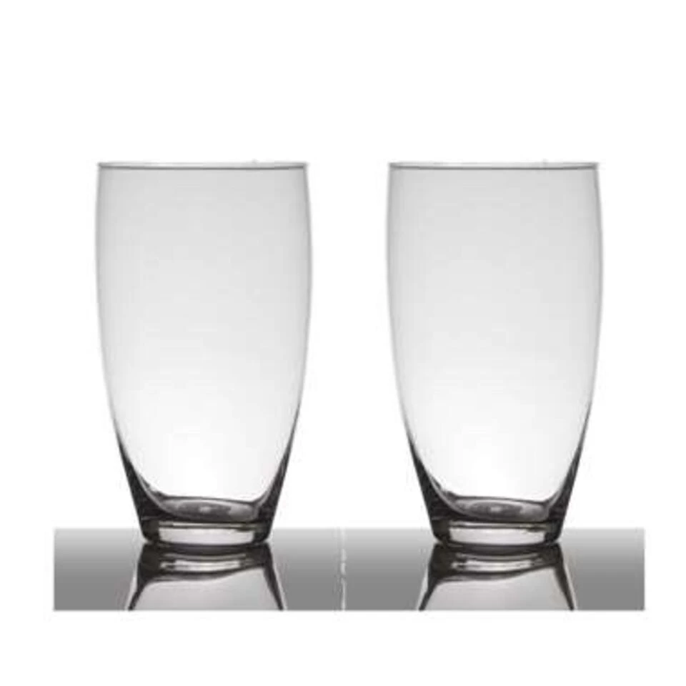 Transparante home-basics bloemen vaas/vazen van glas. Geschikt om een boeket, takken of losse bloemen in te plaatsen. Formaat per vaas: hoogte 25 cm, diameter 14 cm. Materiaal: transparant glas.