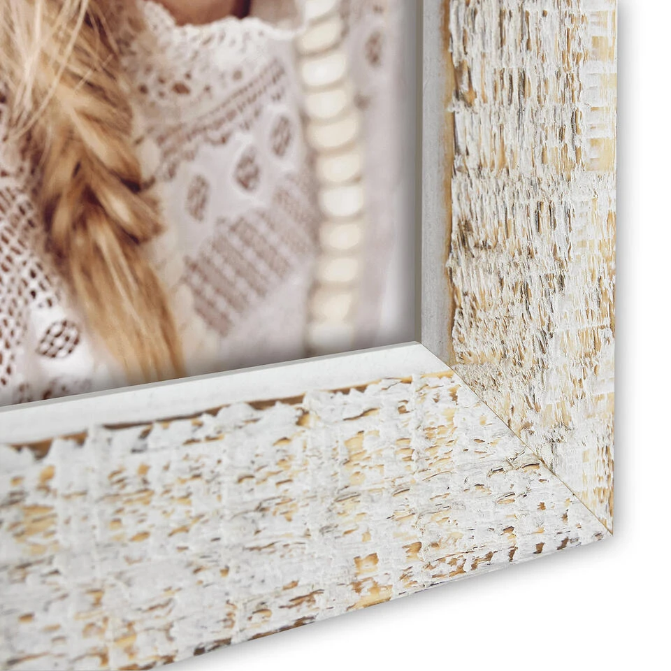 Houten fotolijst vintage wit/bruin geschikt voor een foto van 10 x 15 cm. U kunt het fotolijstje staand of hangend presenteren, het lijstje is voorzien van standaard en ophangoog. Afmeting lijstje: ca. 16 x 21 x 2 cm. Materiaal: hout, glas.